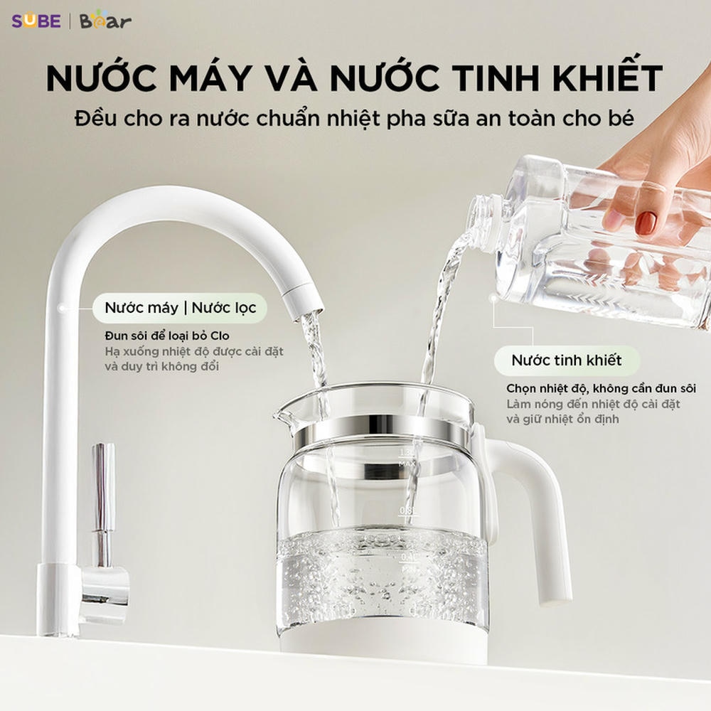 Nước sau khi đun sẽ được duy trì chính xác ở nhiệt độ đã cài đặt nhờ cảm biến NTC thông minh. Dải nhiệt rộng từ 35–95°C phù hợp mọi loại sữa.