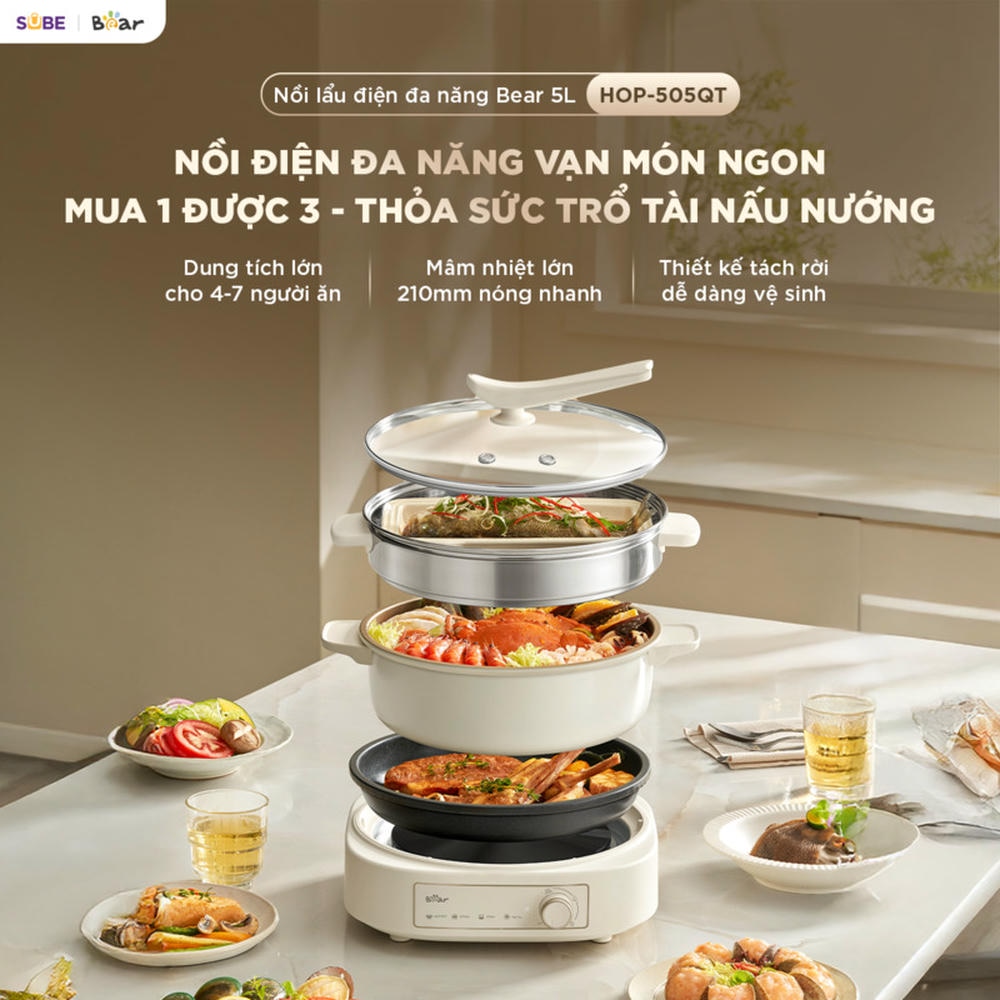 Nồi lẩu điện Bear 5L SB-NL05F cho phép chị em chế biến đa dạng món ngon, cho bữa cơm gia đình đầy đủ dinh dưỡng